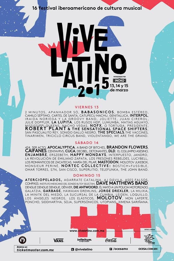 Las bandas que destacan en el Vive Latino 2015 son: