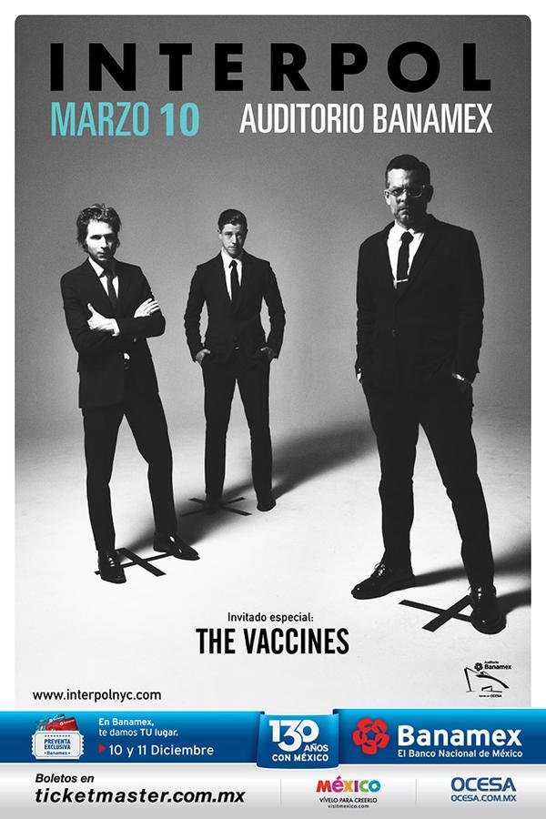 La espera ha terminado para los amantes del post punk en Monterrey, ya que Interpol, la banda integrada por Sam Fogarino, Daniel Kessler y Paul Banks regresará a tierras regias en el 2015. La cita será el próximo martes 10 de marzo en el Auditorio Banamex; y como grata sorpresa se ha anunciado que The Vaccines, banda londinense, será el grupo abridor de este concierto.