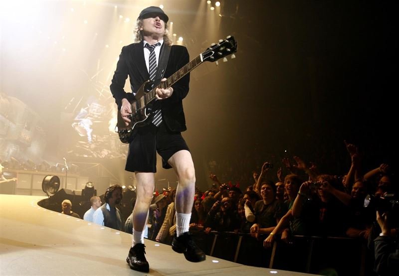 Cuando surge el tema de ropa rockera lo primero que viene a la mente es ropa negra, pantalones y chamarras de cuero o mezclilla, paliacates, botas, estoperoles, camisetas con logos de bandas, pero quien rompe con estos estándares es uno de los personajes más rockeros del género, ni más ni menos que el legendario guitarrista de AC/DC Angus Young.