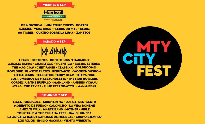 El ecléctico cartel también llamó la atención, ya que incluyó a grandes bandas de la talla de Def Leppard, Travis y Deftones, mezclados con DJ’s como Hardwell, artistas emergentes como Of Montreal, Charlie XCX, Azealia Banks, el lado hip hopero con Bone Thugs & Harmony, artistas latinos como Los Cafres, La Mala Rodríguez, Vicentico, y artistas gruperos como Emilio Navaira (una de sus últimas presentaciones en la ciudad) y la Banda San José de Mesillas.