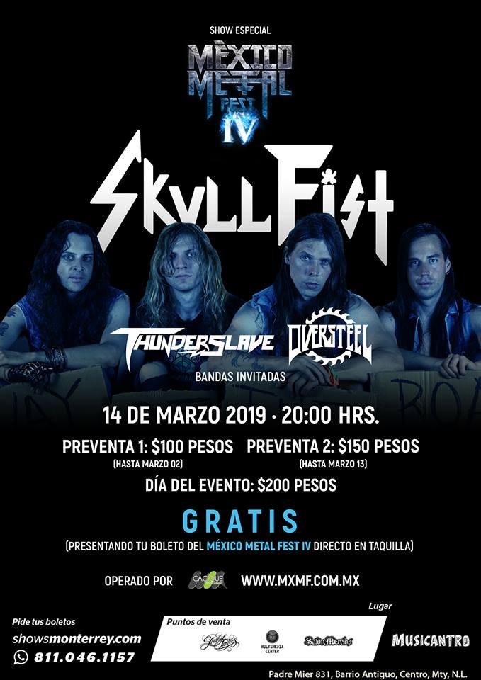 El segundo será protagonizado por Skull Fist, banda canadiense de speed metal formada en 2006. Este show se realizará el 14 de marzo, igualmente en el Musicantro.