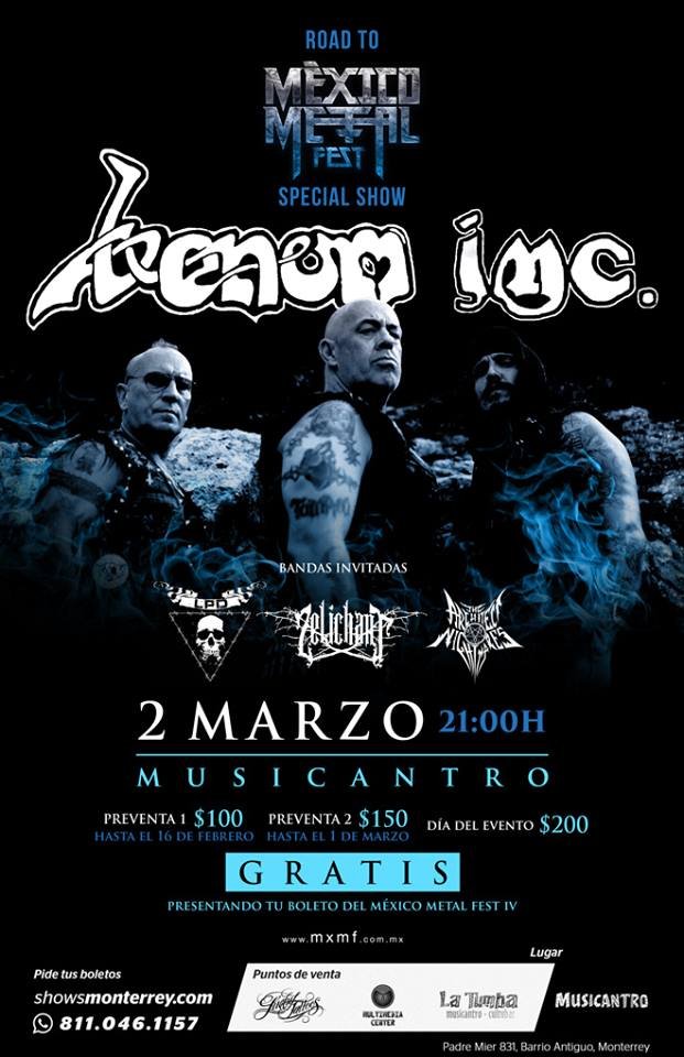 Conciertos, Festivales, México Metal Fest, Musicantro, Skull Fist, Venom Inc.
