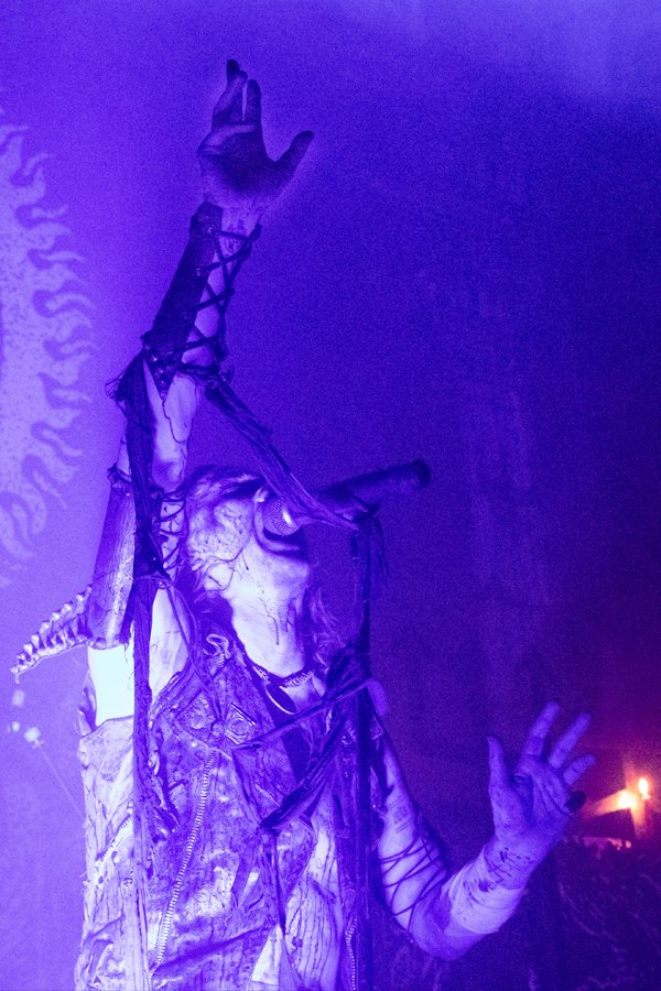 Prácticamente el concierto de WATAIN es un ritual: previo al show tienen su momento a solas en el que la sangre fluye (de hecho Erik traía una herida cubierta con vendas en uno de su antebrazos), pero también durante el show se vio al cantante recitar algunas cosas, ya sea dando la espalda al público o mirándolos directo a los ojos.