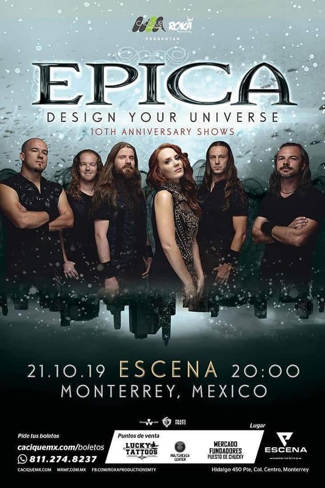 Recuerda que Epica presentará su Design Your Universe 10th Anniversary Show este lunes 21 de octubre en el Escena. La venta de boletos es a través del sistema Boletia con un rango de precios que oscila entre los 700 y 1200 pesos.