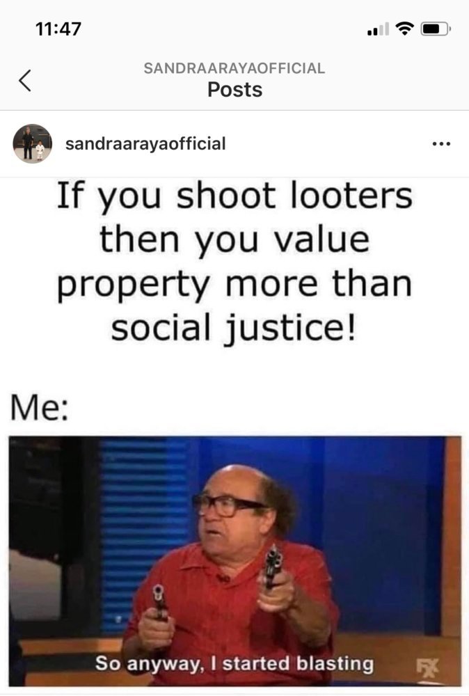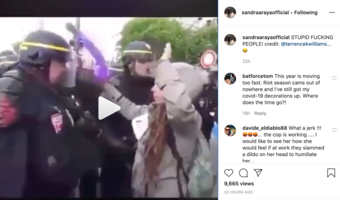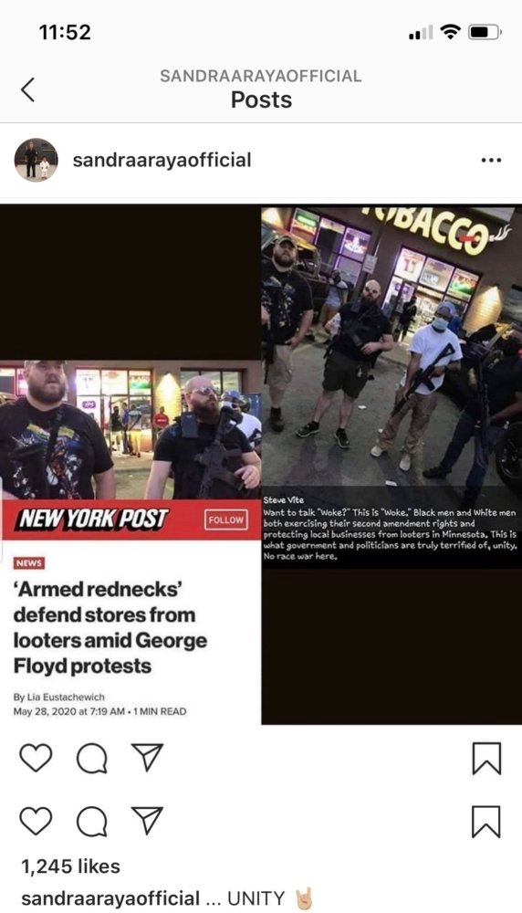 En las publicaciones hace referencia a las protestas que se viven actualmente en Estados Unidos, descacreditándolas y mostrándose a favor del uso de la fuerza, no solo de los policías antidisturbios, sino también de ciudadanos que se oponen al movimiento “Black Lives Matters”.