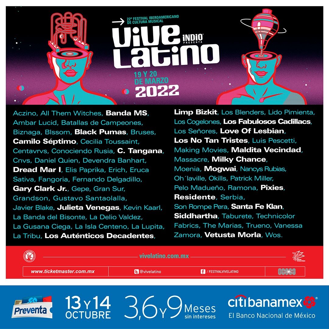 El Vive Latino ya anunció su cartel: Pixies, Limp Bizkit, Black Pumas, Fabulosos Cadillacs y más bandas estarán presentes en su edición 2022.