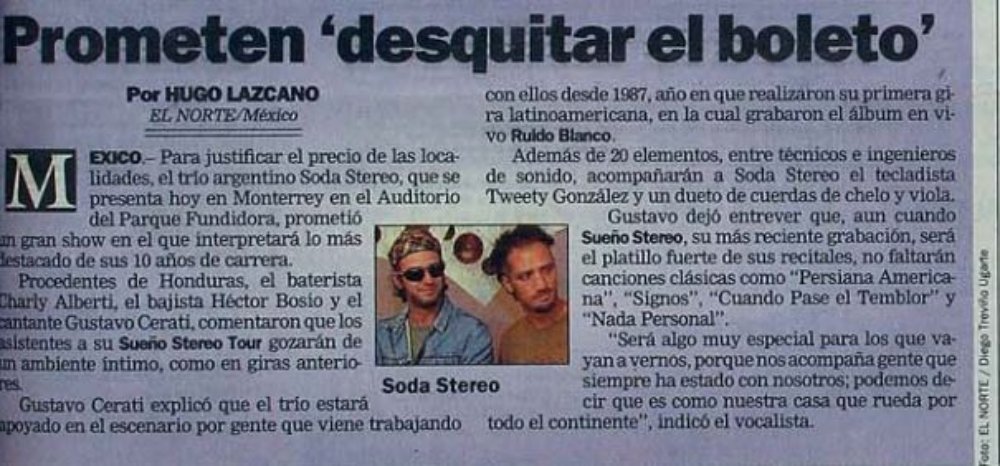 Entra en el siguiente enlace para que veas la historia de ese concierto: El primer concierto de Soda Stereo en Monterrey .