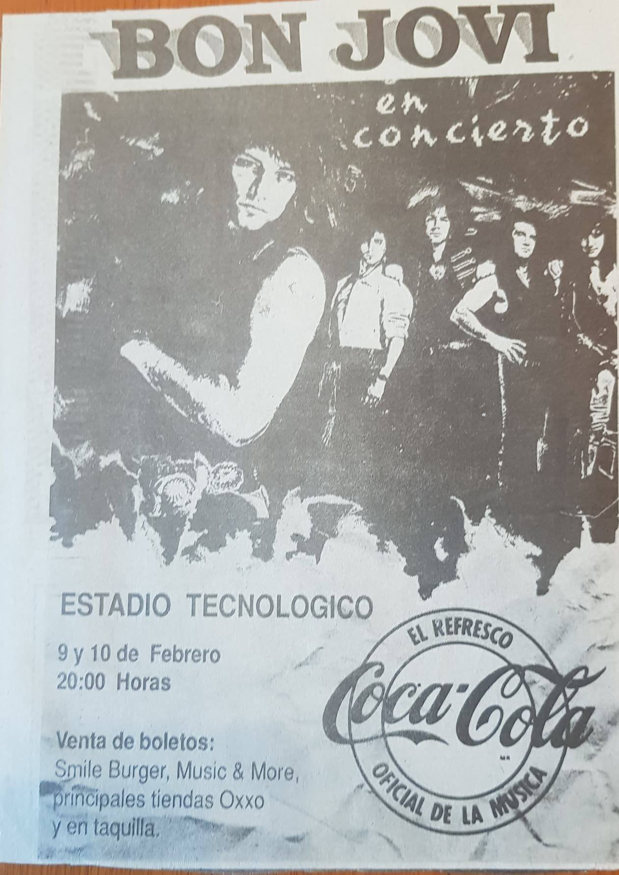 En efecto, la banda de hard rock oriunda de Nueva Jersey se presentó en Monterrey y por partida doble, los días 9 y 10 de febrero de 1990, teniendo como sede al Estadio Tecnológico.
