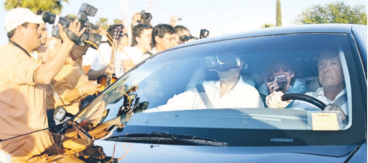 Mick Jagger en su llegada a Monterrey, tomando video de la recepción. Foto: Enrique Zamarripa, El Norte.