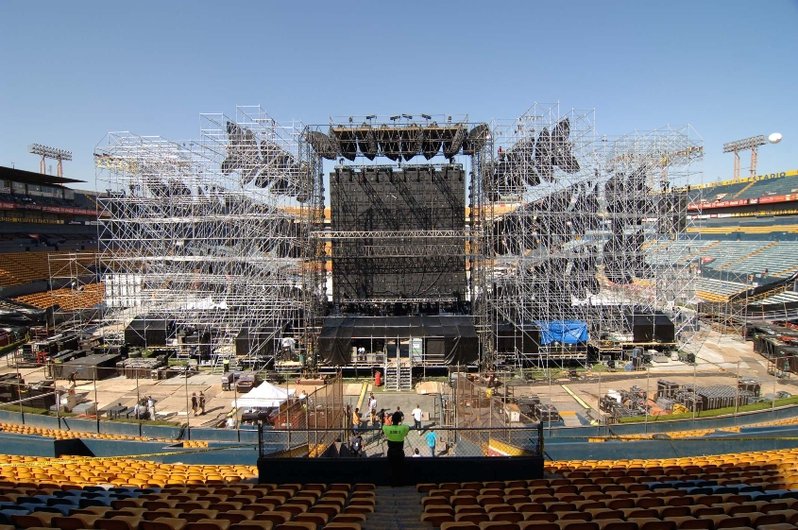Los preparativos en el Estadio iban bien, en tiempo. Se montó un escenario enorme, con pantalla gigante y gigantescos adornos a los lados, además de que se colocó una pasarela que iba desde el escenario (ubicado en la cabecera sur) hasta la cabecera contraria.
