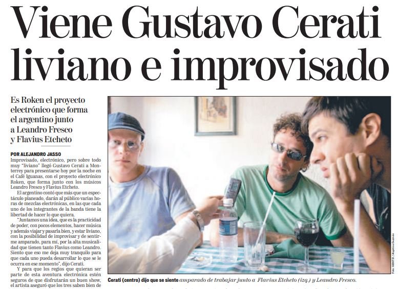 En ese show no hubo rock, hubo solo música electrónica, se trataba de “Roken” el proyecto creado por Gustavo en 2003 en conjunto con Flavio Etcheto y Leandro Fresco, quienes colaboraron con él en varias etapas de Soda Stereo y de la carrera solista de Cerati.