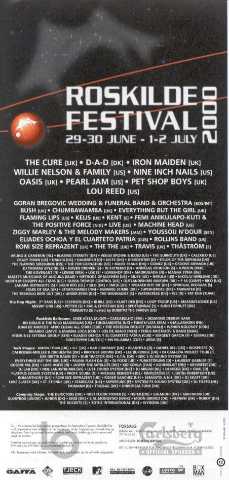 Un festival en Dinamarca que prometía ser de antología, ya que en él estarían artistas de la talla de The Cure, Oasis, Lou Reed y Pearl Jam, entre otros artistas.